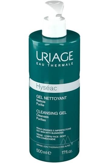 URIAGE HYSEAC GEL DETERGENTE 500 ML ELIMINA IMPURITÀ ED ECCESSO SEBO, GEL ULTRA DELICATO SENZA SAPONE PER CUTE MISTA O GR