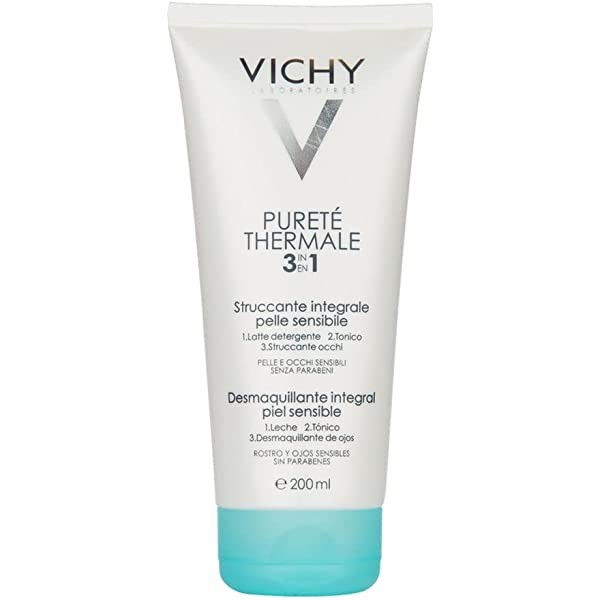 3 IN 1 STRUCCANTE INTEGRALE 300 ML PELLE SENSIBILE. LATTE DETERGENTE, TONICO, STRUCCANTE OCCHI. CON ACQUA TERMALE E CAPTELAE. VICHY PURETÈ THERMALE. PURETE THERMALE
