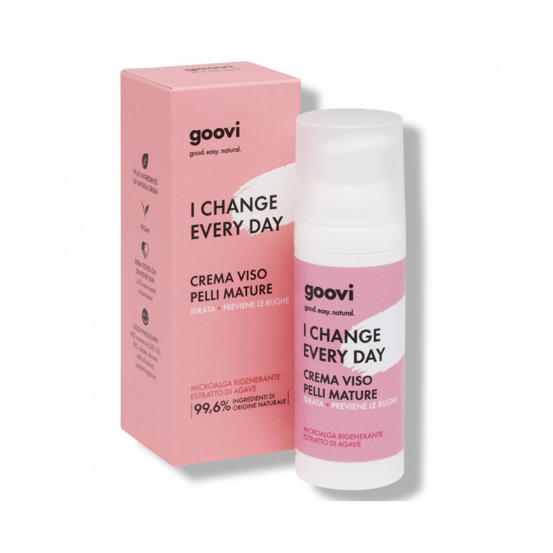 La nuova crema viso Goovi per pelli mature si chiama I Change Every Day, perché avrai ogni giorno un viso più giovane.