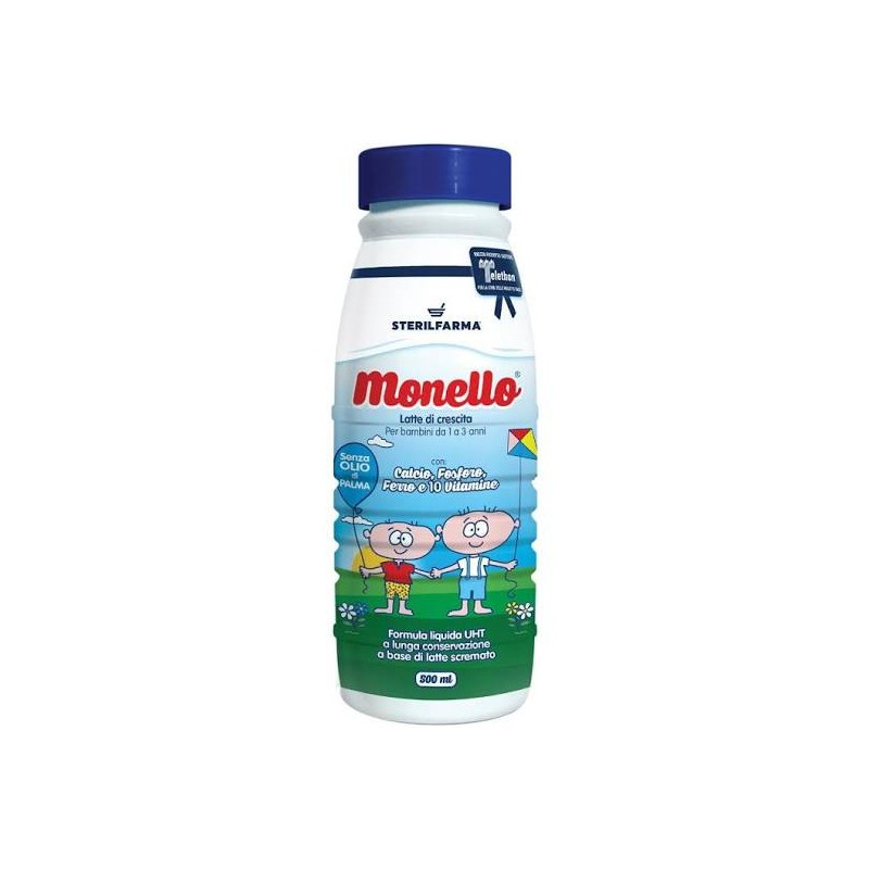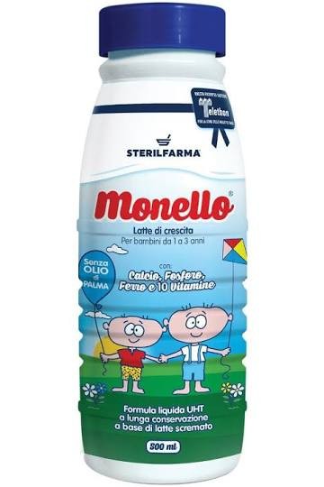 MONELLO LATTE DI CRESCITA 500 ML SENZA OLIO DI PALMA PER BAMBINI DA 1 A 3 ANNI, CON CALCIO, FOSFORO, FERRO E 10 VITAMINE