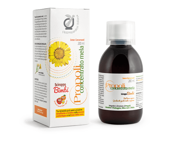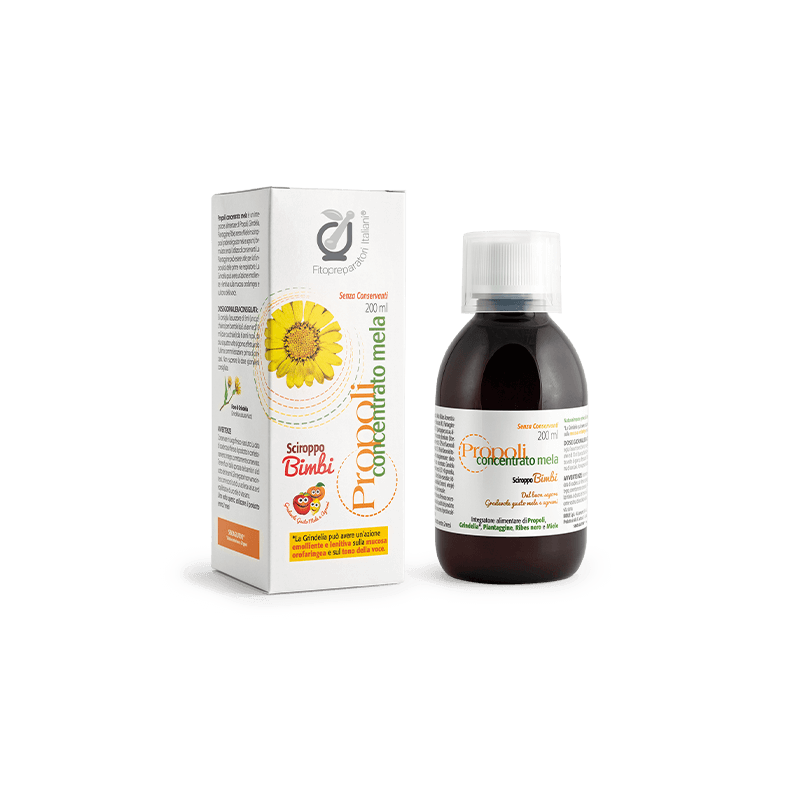 SCIROPPO PROPOLI CONCENTRATO BIMBI MELA 200 ML PER IL BENESSERE DELLE VIE RESPIRATORIE CON GRINDELIA, MIELE, RIBES NERO, P
