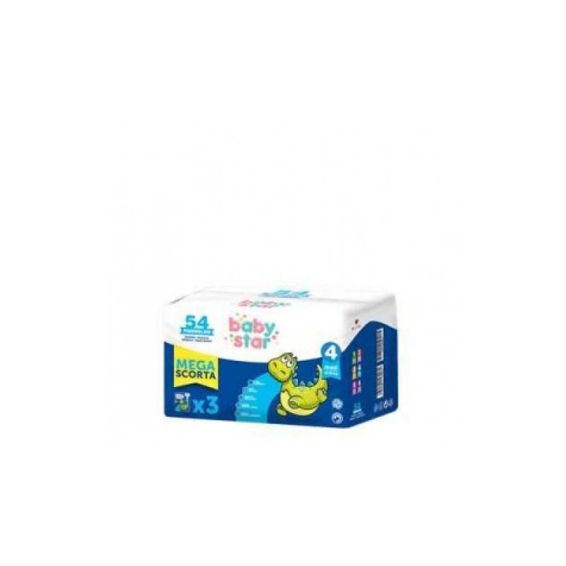 54 PANNOLINI TAGLIA 4 3/18 KG SUPER ASSORBENTI - BANDE ELASTICHE - TESTATO DERMATOLOGICAMENTE - ANALLERGICO - MORBIDE BARR