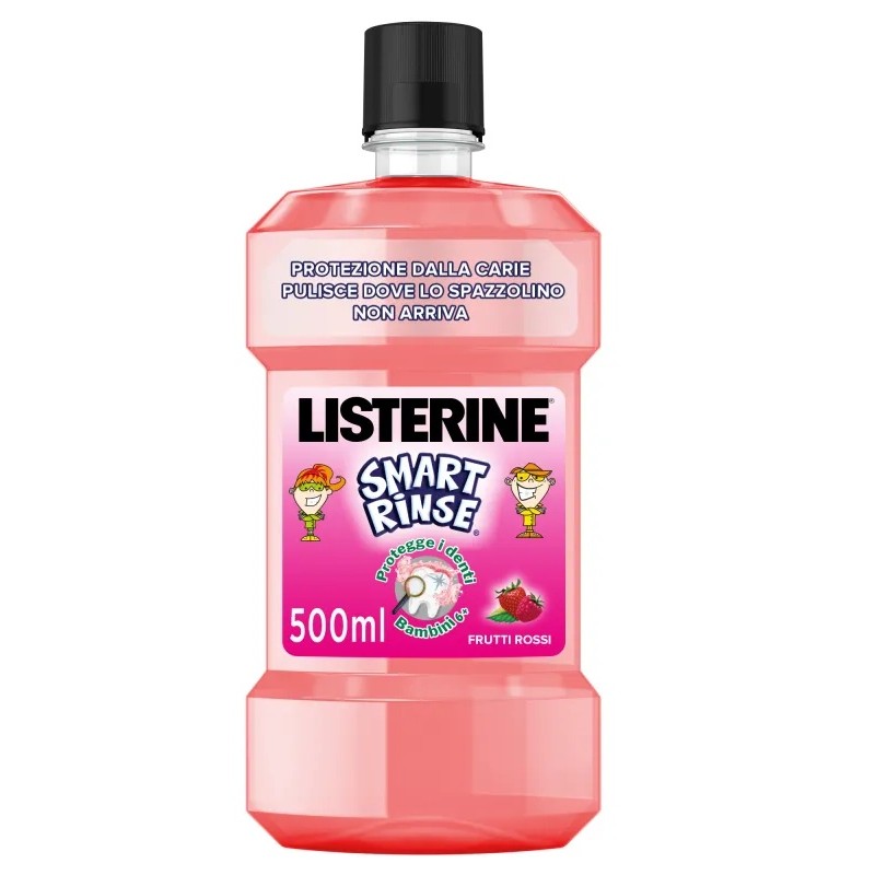 LISTERINE SMART RINSE 6+ COLLUTORIO 500 ML AIUTA A PROTEGGERE I DENTI DEL BAMBINO CONTRO LE CARIE, CONTIENE FLUORURO DI SO