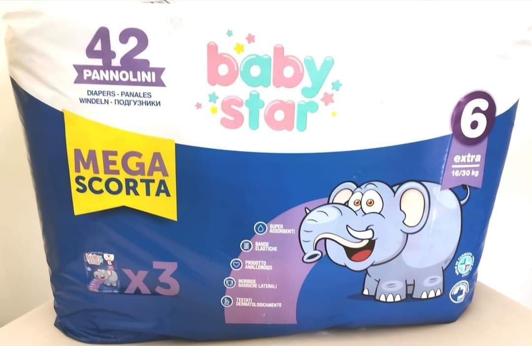 42 PANNOLINI TAGLIA 6 16/30 KG SUPER ASSORBENTI - BANDE ELASTICHE - TESTATO DERMATOLOGICAMENTE - ANALLERGICO - MORBIDE BAR