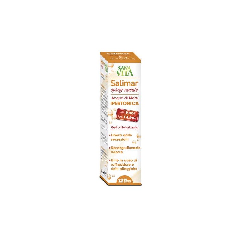 SANAVITA SALIMAR SPRAY NASALE 125 ML ACQUA DI MARE IPERTONICA LIBERA DALLE SECREZIONI, DECONGESTIONANTE NASALE, IN CASO DI