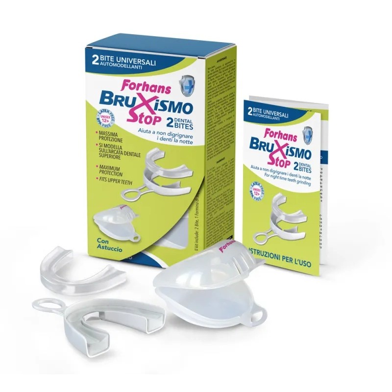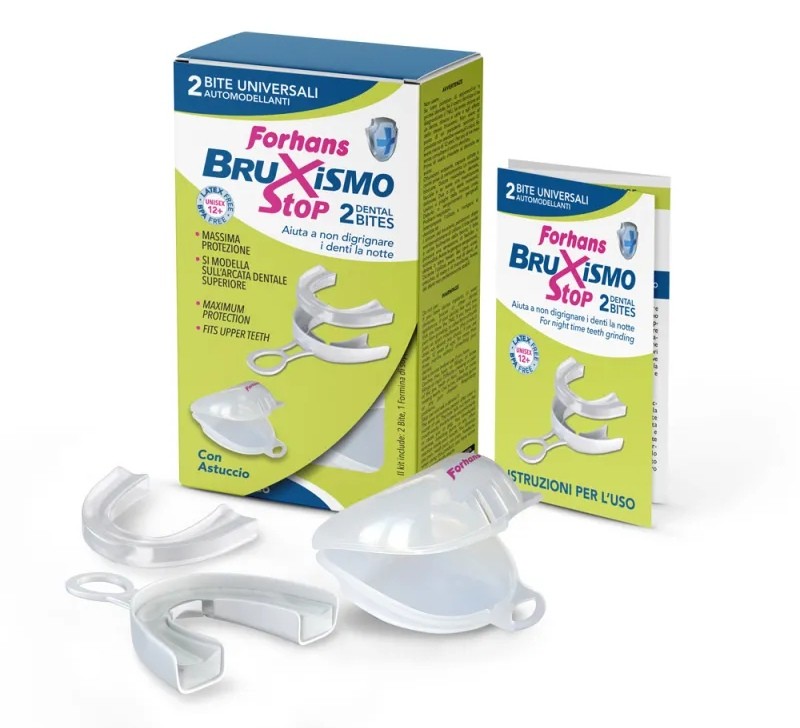 BRUXISMO STOP 2 BITE AUTOMODELLANTE EVITA IL DANNEGGIAMENTO DEI DENTI DOVUTO AL DIGRIGNAMENTO NOTTURNO INVOLONTARIO SI AD