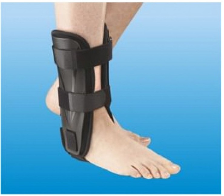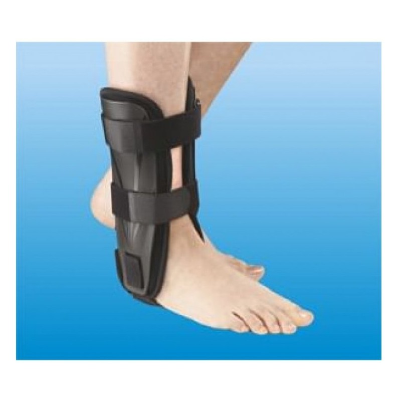 Strutture esterna anatomica bivalva in materiale plastico estremamente leggero e resistente. Pratica regolazione larghezza tallone e circonferenza tibia a mezzo velcro. Con cuscinetti ad aria, gonfiabili secondo esigenze.
