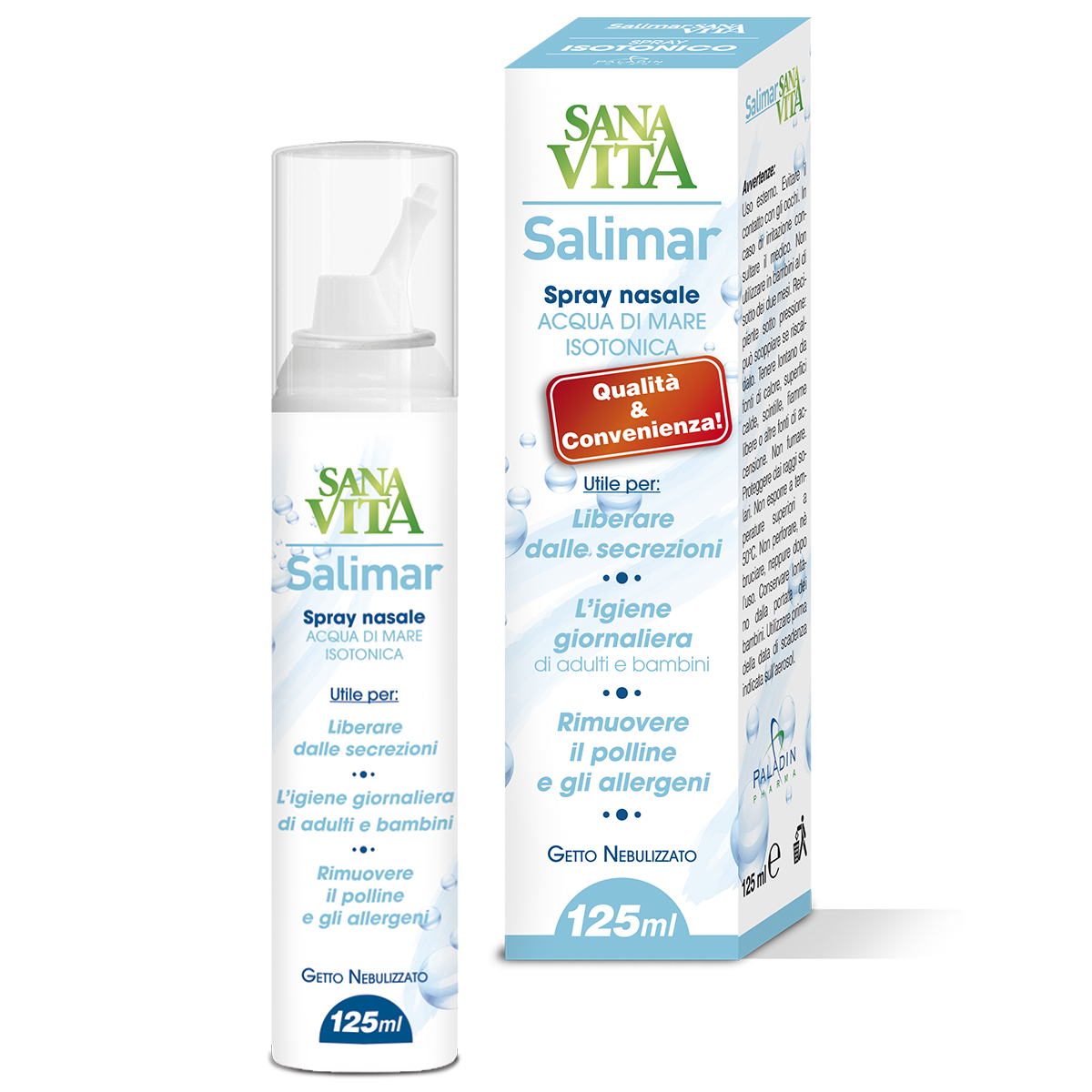 SPAY NASALE 125 ML ACQUA DI MARE ISOTONICA PER LIBERARE DALLE SECREZIONI, RIMUOVERE POLLINI E ALLERGENI PER BAMBINI E ADU