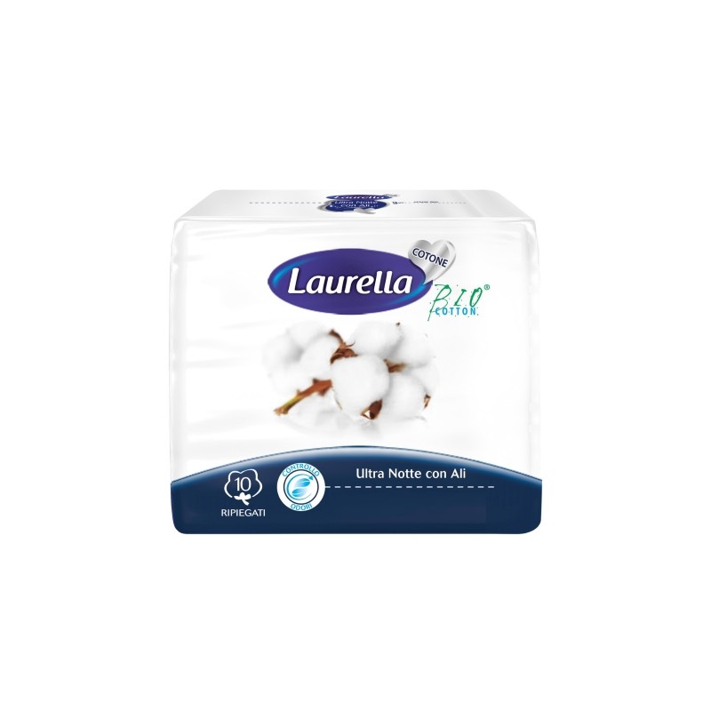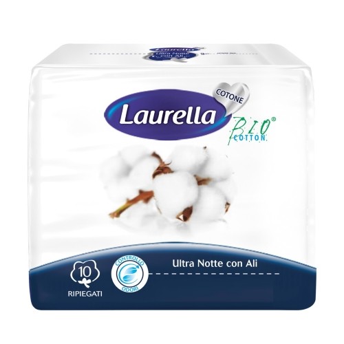 ASSORBENTI COTONE BIO ULTRA NOTTE CON ALI 10 PZ RIPIEGATI LAURELLA