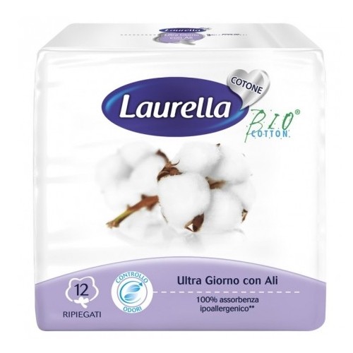 ASSORBENTI BIO ULTRA GIORNO CON ALI 12 PZ RIPIEGATI 100% ASSORBENZA, IPOALLERGENICO,CONTROLLO ODORI LAURELLA