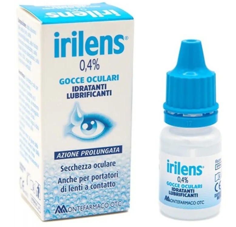IRILENS GOCCE OCULARI COLLIRIO 0,4% ACIDO IALURONICO LUBRIFICANTI E IDRATANTI. AZIONE PROLUNGATA PER SECCHEZZA OCULARE, ANCHE PER PORTATORI DI LENTI A CONTATTO. FLACONE DA 10 ML.
