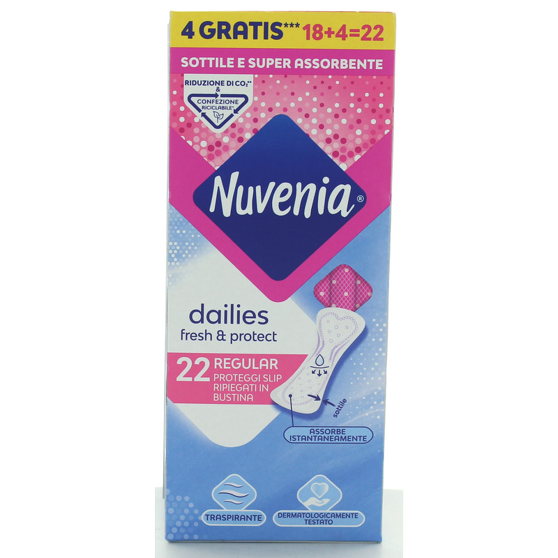 NUVENIA 22 PROTEGGI SLIP RIPIEGATI IN BUSTINA, SOTTILE E SUPER ASSORBENTI ASSORBE ISTANTANEAMENTE, TRASPIRANTE DERMATOLO