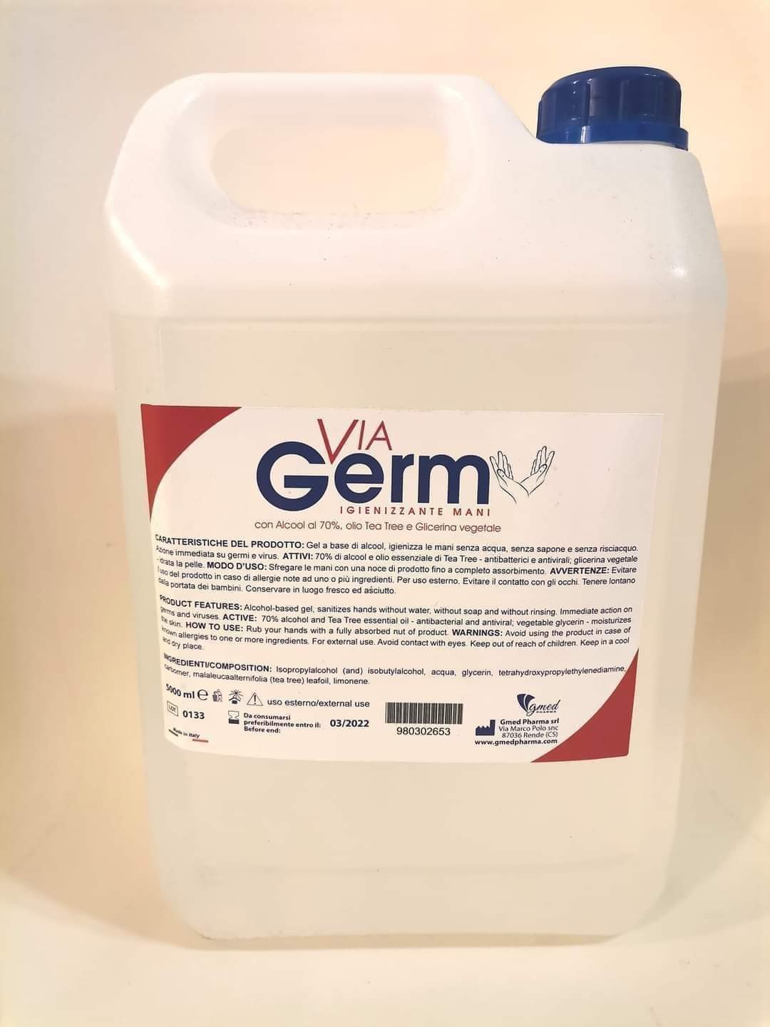 5 LITRI GEL IGIENIZZANTE MANI CON 70 % ALCOOL-GLICERINA-TEA TREE OIL