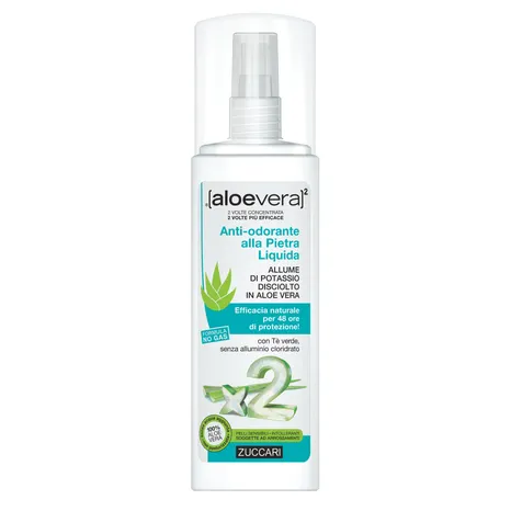 Zuccari AloeVera2 Anti-odorante alla Pietra Liquida è un deodorante spray naturale con efficacia testata sulla pelle delicata e intollerante. Regola la flora batterica e assicura protezione per 48h contro i cattivi odori.
