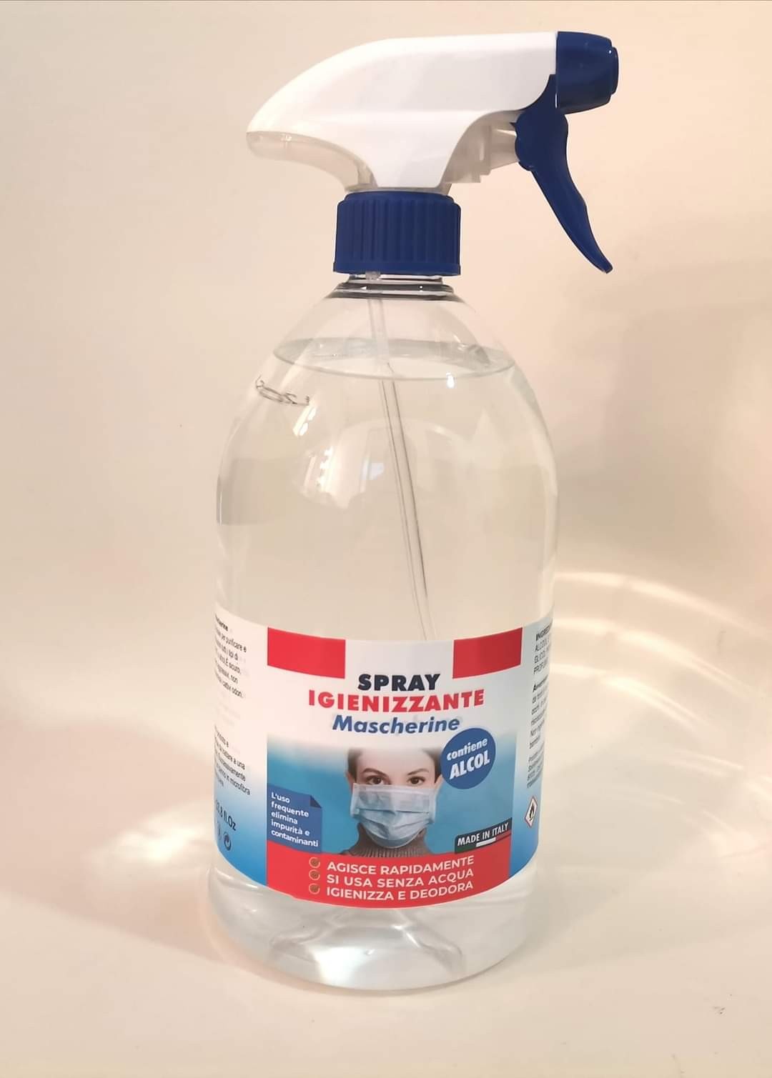 SPRAY IGIENIZZANTE MASCHERINE 1 LITRO CON ALCOL L' USO FREQUENTE ELIMINA IMPURITÀ E CONTAMINANTI