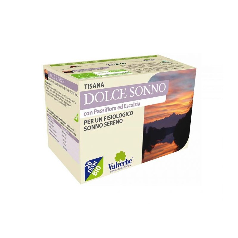 TISANA DOLCE SONNO 20 FILTRI BIOLOGICO CON PASSIFLORA ED ESCOLZIA PER UN FISIOLOGICO SONNO SERENO CON MELISSA, LAVANDA V