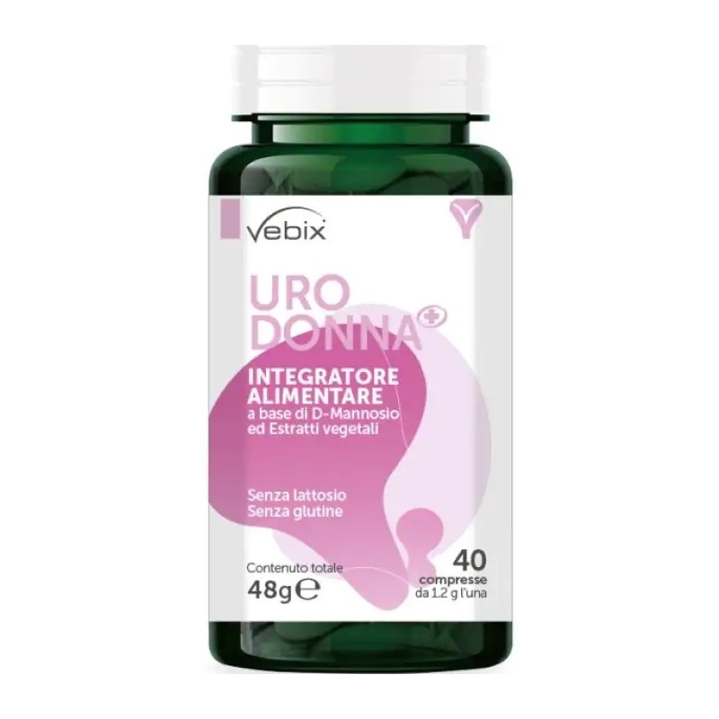 URO DONNA 40 COMPRESSE DRENANTE CON D-MANNOSIO, UVA URSINA, BETULLA, SEMI DI POMPELMO. PER LA FUNZIONALITÀ DELLE VIE URINARIE,DRENAGGIO DEI LIQUIDI CORPOREI, ANTIOSSIDANTE. VEBIX Nutrients. Cistite