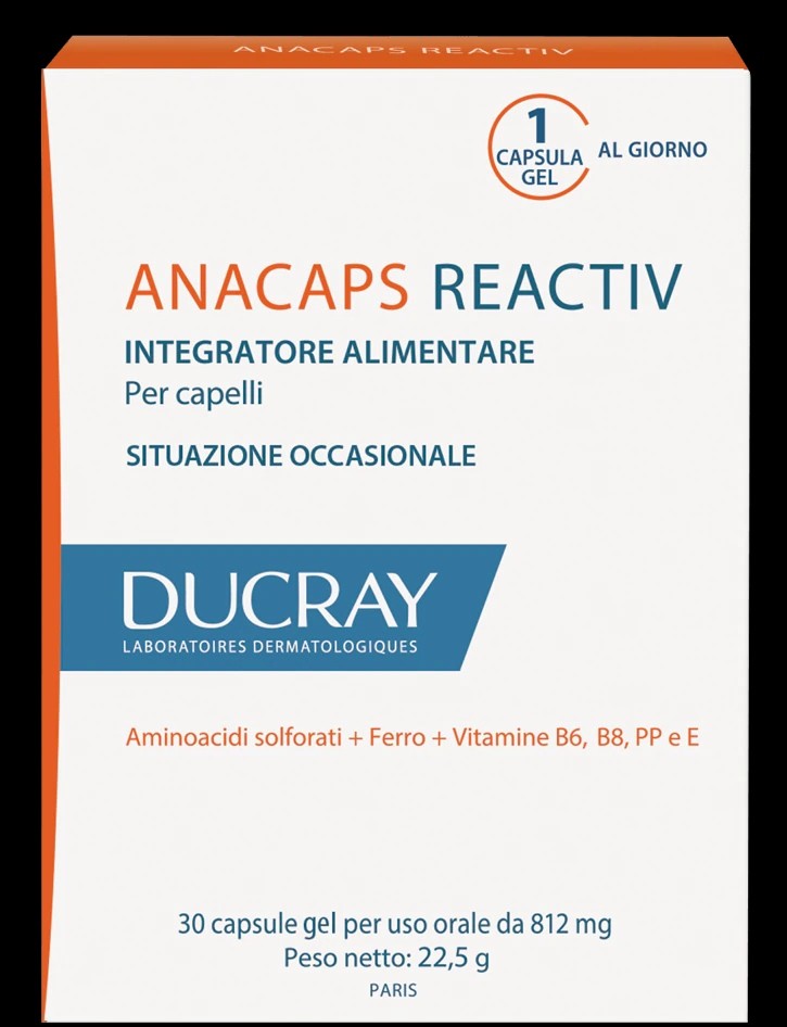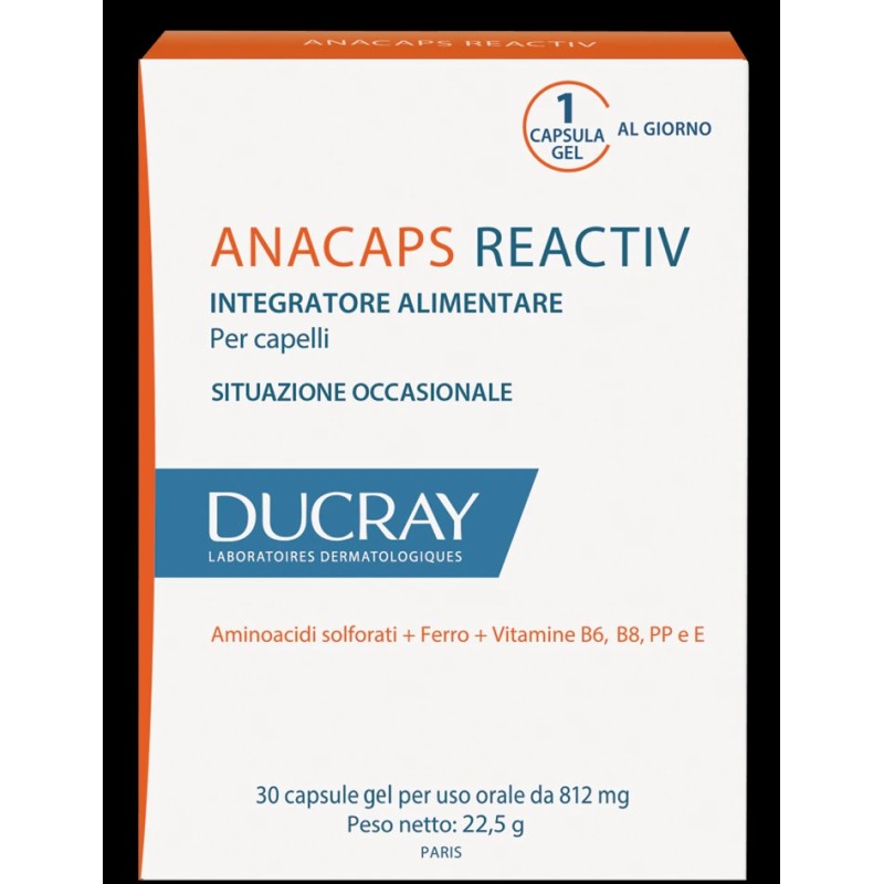DUCRAY ANACAPS REACTIV 30 CAPSULE GEL TRATTAMENTO AMINOACIDI SOLFORATI, FERRO, VITAMINA B6, VITAMINA BB, VITAMINA PP, VITA