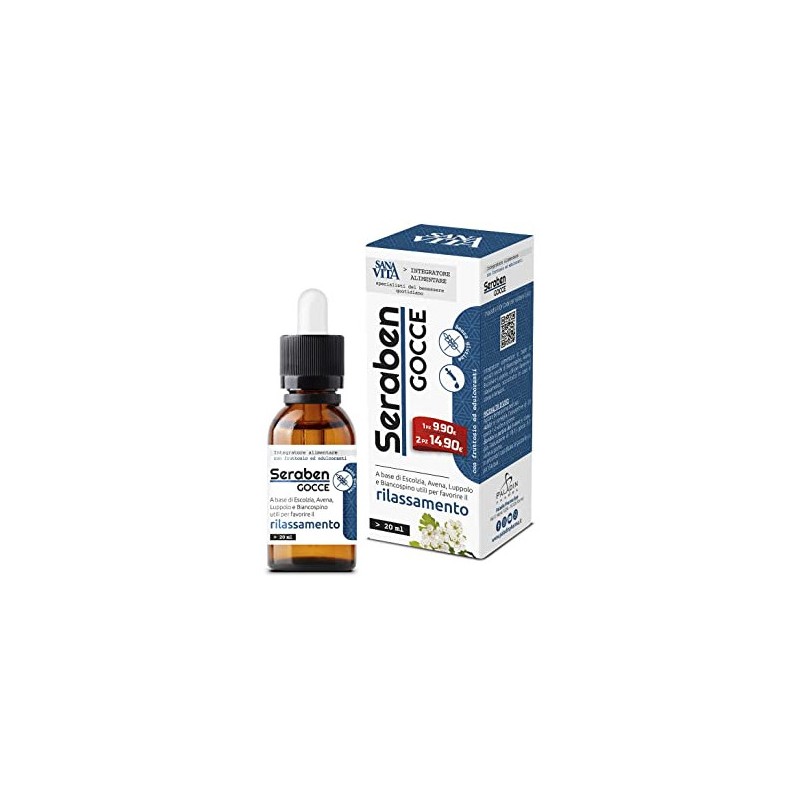 SERABEN GOCCE 20 ML CON BIANCOSPINO, AVENA, ESCOLZIA, LUPPOLO, BIANCOSPINO UTILI PER FAVORIRE IL RILASSAMENTO PER ANSIA E