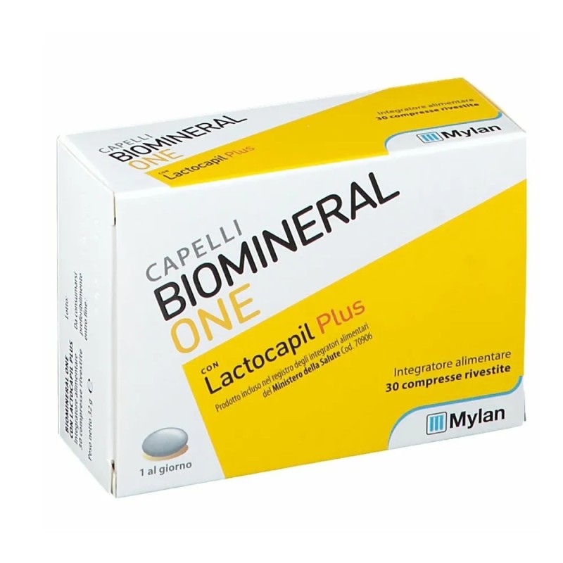 BIOMINERAL ONE LACTOCAPIL PLUS 30 COMPRESSE PER CAPELLI CON BIOTINA, VITAMINA D3, ACIDO LINOLEICO, TAURINA PER IL MANTENIM
