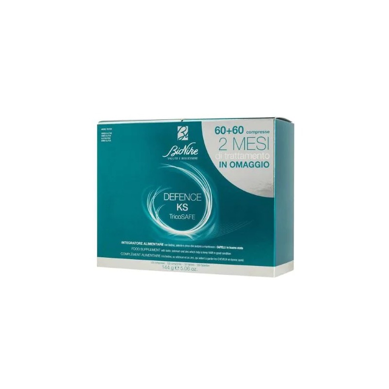 BIONIKE DEFENCE KS TRICOSAFE 120 COMPRESSE AIUTANO A RINFORZARE I CAPELLI E A MANTENERLI SANI CON BIOTINA, SELENIO, ZINCO