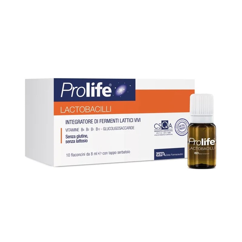 PROLIFE 10 FLACONCINI CON FERMENTI LATTICI VIVI 4,3 MILIARDI DI CELLULE VIVE, PREBIOTICI, VITAMINA B1, VITAMINA B2, VITAMI