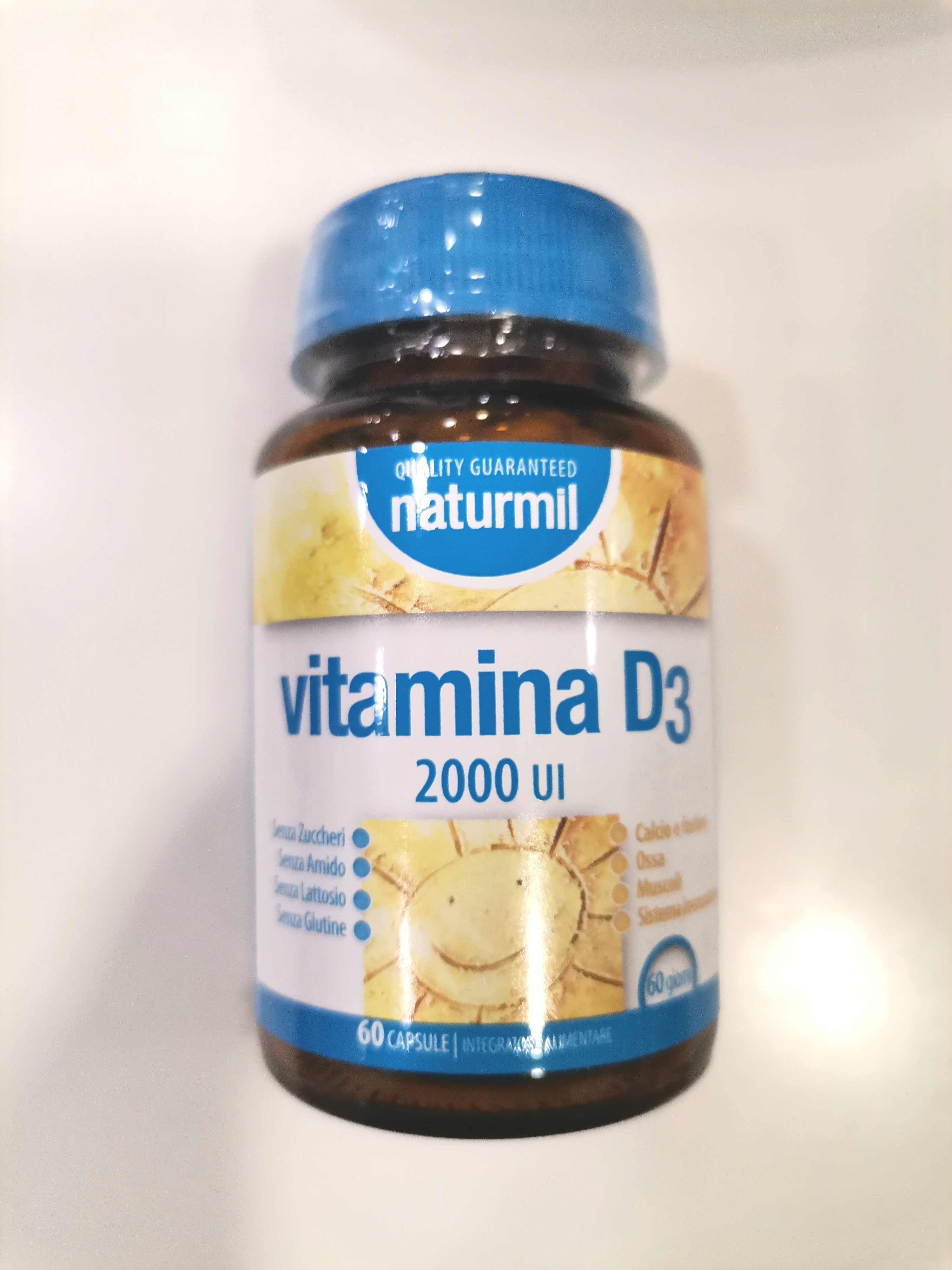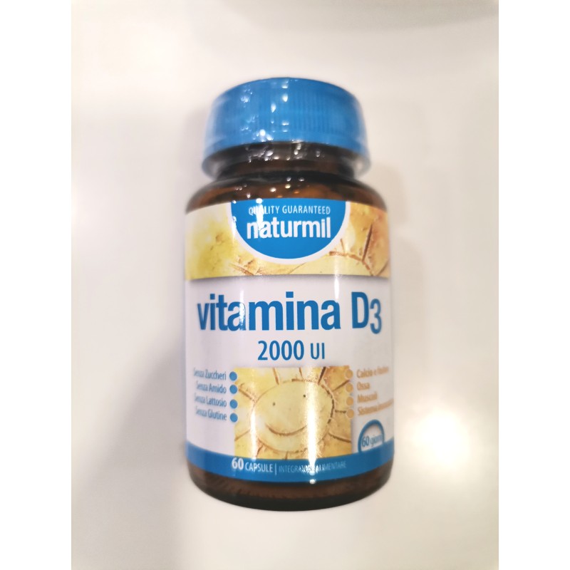 VITAMINA D3 2000 UI FORMATO 60 CAPSULE PER IL SISTEMA IMMUNITARIO, MUSCOLI, OSSA, CALCIO E FOSFORO SENZA GLUTINE, SENZA Z