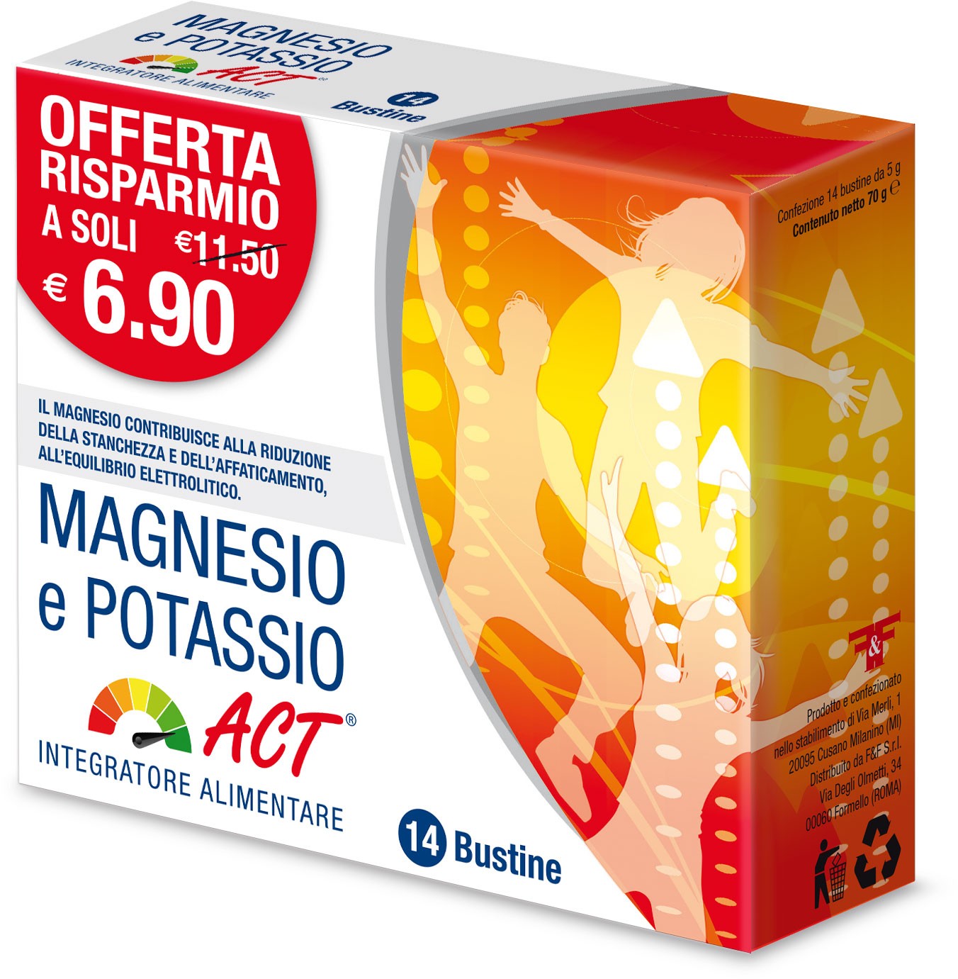 MAGNESIO POTASSIO ACT 14 BUSTINE CON VITAMINA C CONTRIBUISCE ALLA RIDUZIONE DI STANCHEZZA E AFFATICAMENTO, AL NORMALE MET