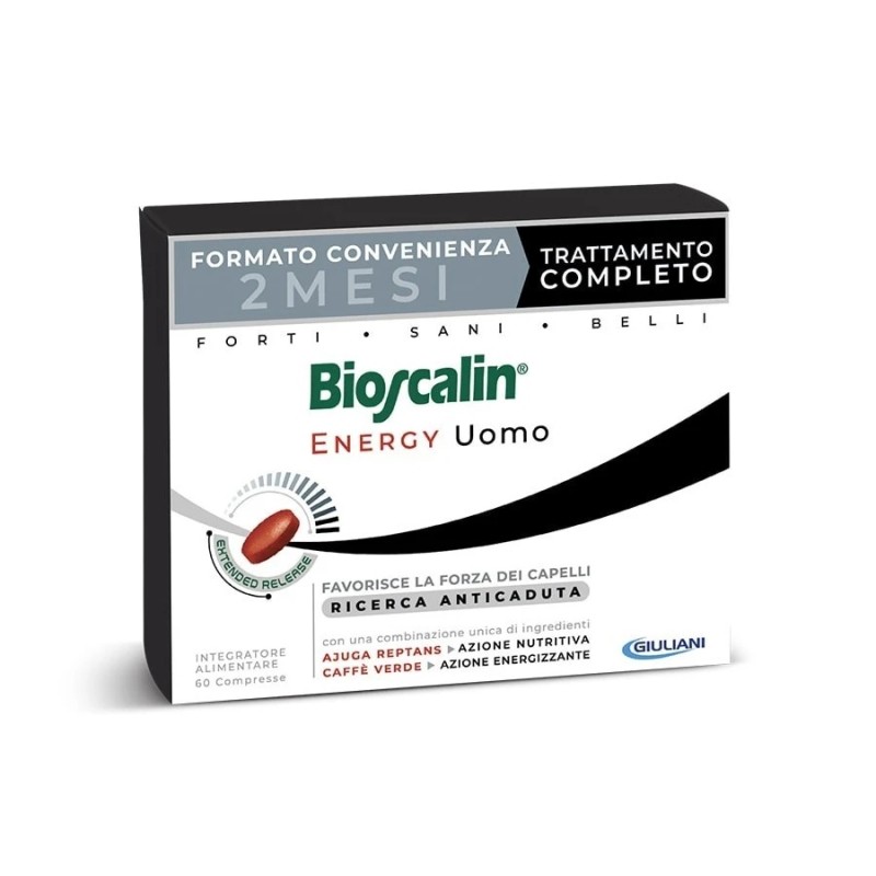 BIOSCALIN ENERGY UOMO ANTICADUTA 60 COMPRESSE ATP - 3 CON ARGININA, CAFFEINA, BIOTINA, AJUGA REPTANS ESCLUSIVA TECNOLOGIA