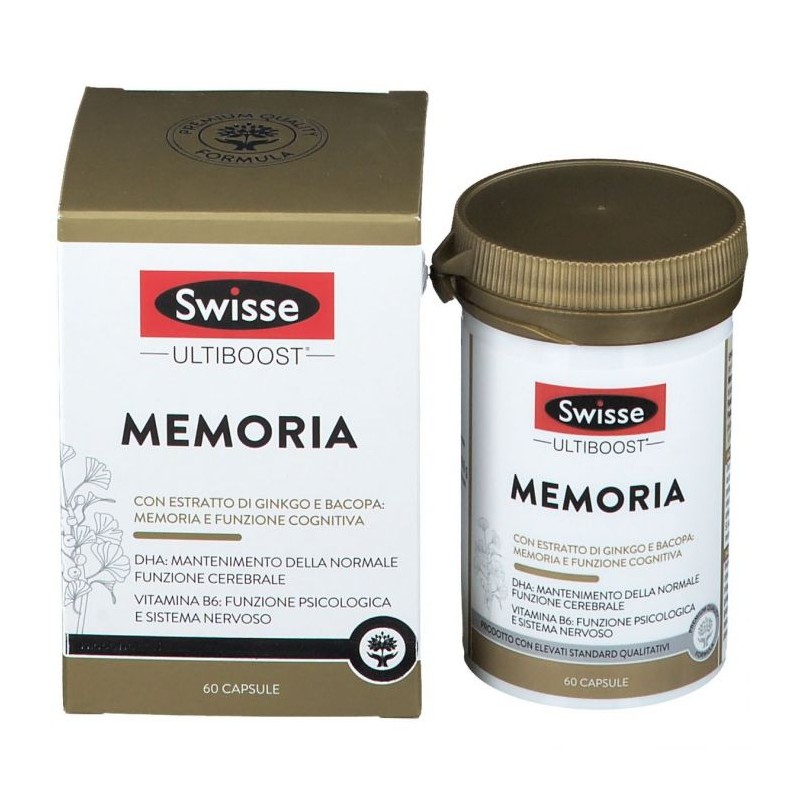 SWISSE MEMORIA CON ESTRATTO DI GINGKO E BACOPA: MEMORIA E FUNZIONE COGNITIVA DHA MANTENIMENTO DELLA NORMALE FUNZIONE CERE