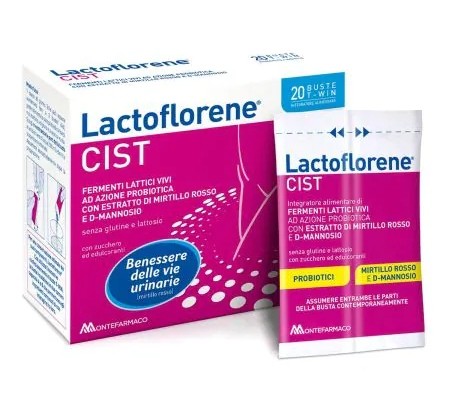 Lactoflorene Cist Integratore vie urinarie 20 bustine è un integratore alimentare probiotico con fermenti lattici vivi che favoriscono la flora batterica intestinale e la funzionalità delle vie urinarie.