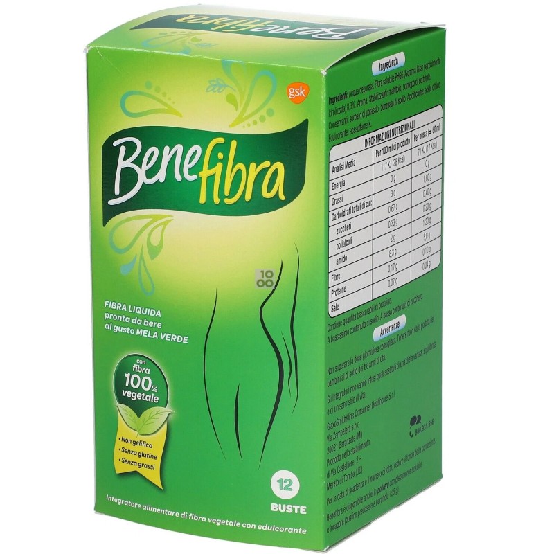 Le bustine di fibra alimentare Benefibra in forma liquida sono una forma di supporto alle funzioni intestinali in caso di cattivo funzionamento e alterazione della flora batterica. La sua formulazione consente l'apporto giornalieri di 5 grammi di fibre, oltre a quelle naturalmente introdotte con l'alimentazione. L'utilizzo del prodotto è utile in caso di diete a ridotto apporto di fibre o in caso di aumento di fabbisogno. La formulazione: