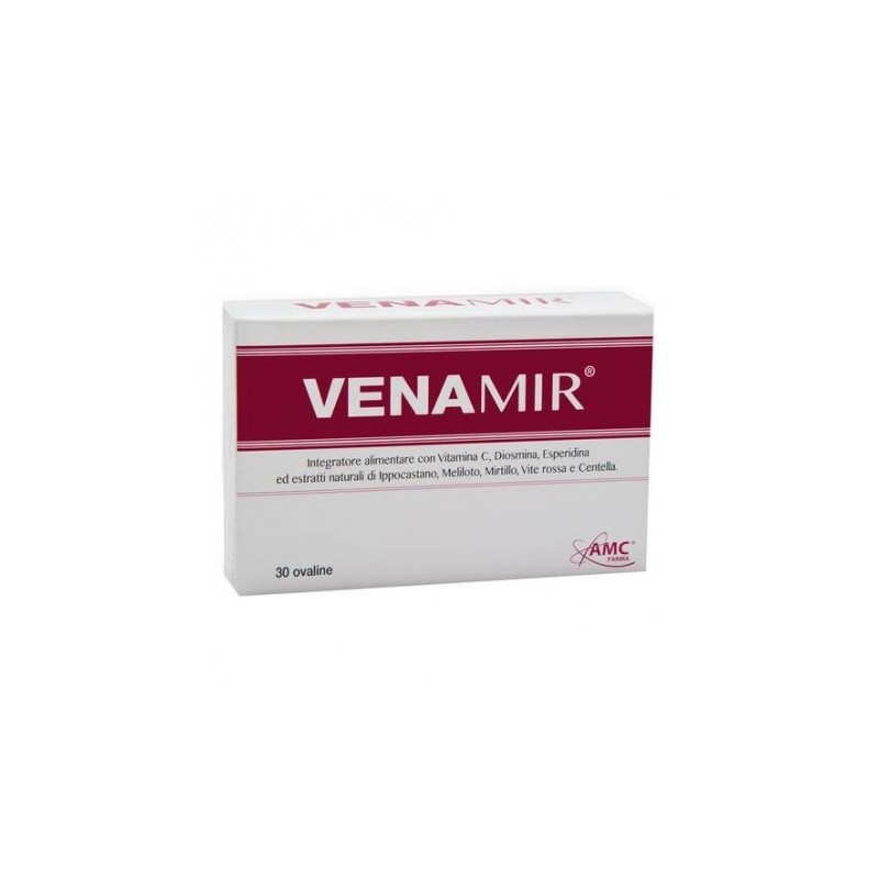 Venamir è un integratore alimentare, a base di estratti naturali, flavonoidi e Vitamina C, utile per migliorare il tono venoso, il drenaggio linfatico e il trofismo del microcircolo. È caratterizzato da sostanze naturali utili per sostenere la circolazione venosa, favorire la funzionalità del plesso emorroidario ed alleviare la sensazione di pesantezza alle gambe. Grazie alla presenza della Vitamina C, contribuisce alla fisiologica formazione del collagene per la normale funzione dei vasi sanguigni. È consigliato nel trattamento delle manifestazioni tipiche dell'insufficienza venosa e dell'edema linfatico. Le attività dei principi attivi appositamente selezionati, lo rendono un prodotto utile in presenza di emorroidi, cellulite, vene varicose, fragilità capillare e relative manifestazioni.