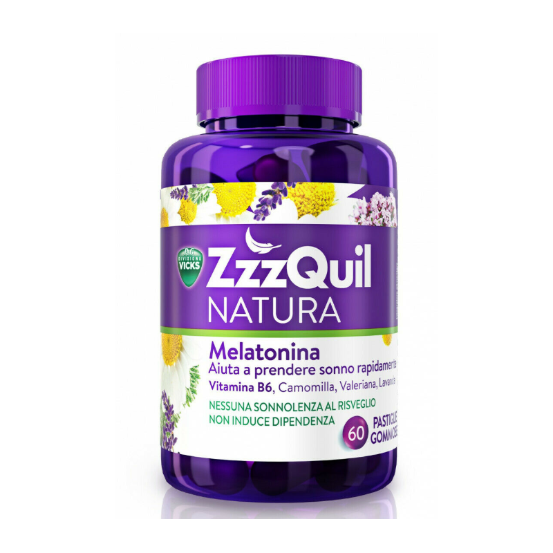 VICKS ZZZQUIL NATURA 60 PASTIGLIE GOMMOSE CON VITAMINA B6, MELATONINA, CAMOMILLA, VALERIANA E LAVANDA AIUTA A PRENDERE SON