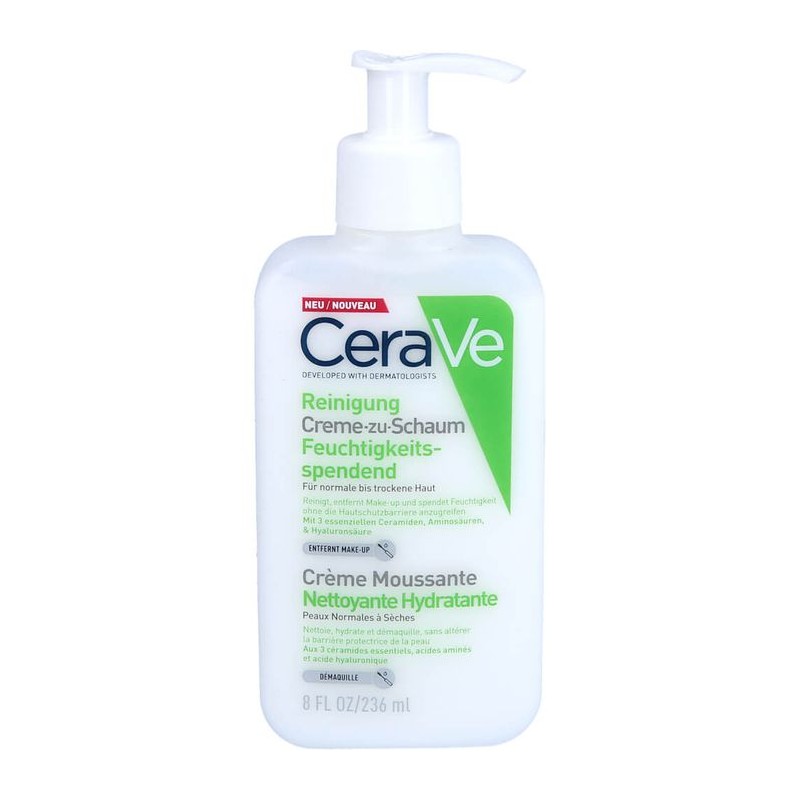 Il Detergente Crema-Schiuma Idratante CeraVe deterge e idrata per una pulizia quotidiana del viso. Rimuove efficacemente le impurità, il trucco e gli oli in eccesso.