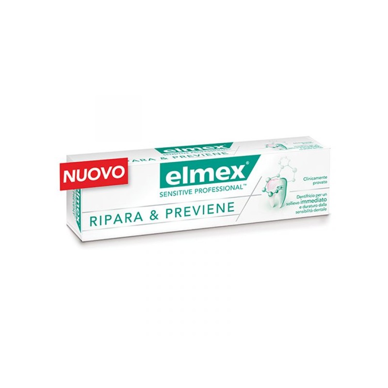 Con il dentifricio elmex® Sensitive Professional Ripara & Previene potrai finalmente goderti i cibi e le bevande che ami. I denti sensibili possono essere causati quando le tue gengive recedono e il tuo smalto è danneggiato, ciò espone piccoli tubuli collegati alle terminazione nervose. Il dentifricio elmex® Sensitive Professional Ripara & Previene è un dentifricio per denti sensibili che può aiutarti con questo. Con la tecnologia pro-argin , questo dentifricio delicato occlude i tubuli collegati ai nervi del dente e crea una barriera duratura che proteggere dal dolore dovuto ai denti sensibili. Con il dentifricio elmex® Sensitive Professional Ripara & Previene avrai un sollievo immediato del dolore applicare fino a due volte al giorno direttamente con la punta del dito sul dente sensibile e massaggiare delicatamente per un minuto. Inoltre, questo dentifricio delicato contiene zinco per rafforzare le gengive e aiutare a prevenire la recessione gengivale, che è la causa principale della sensibilità dentale. Adesso, finalmente, puoi provare il sollievo dai denti sensibili che stavi cercando quando utilizzi questo dentifricio delicato.