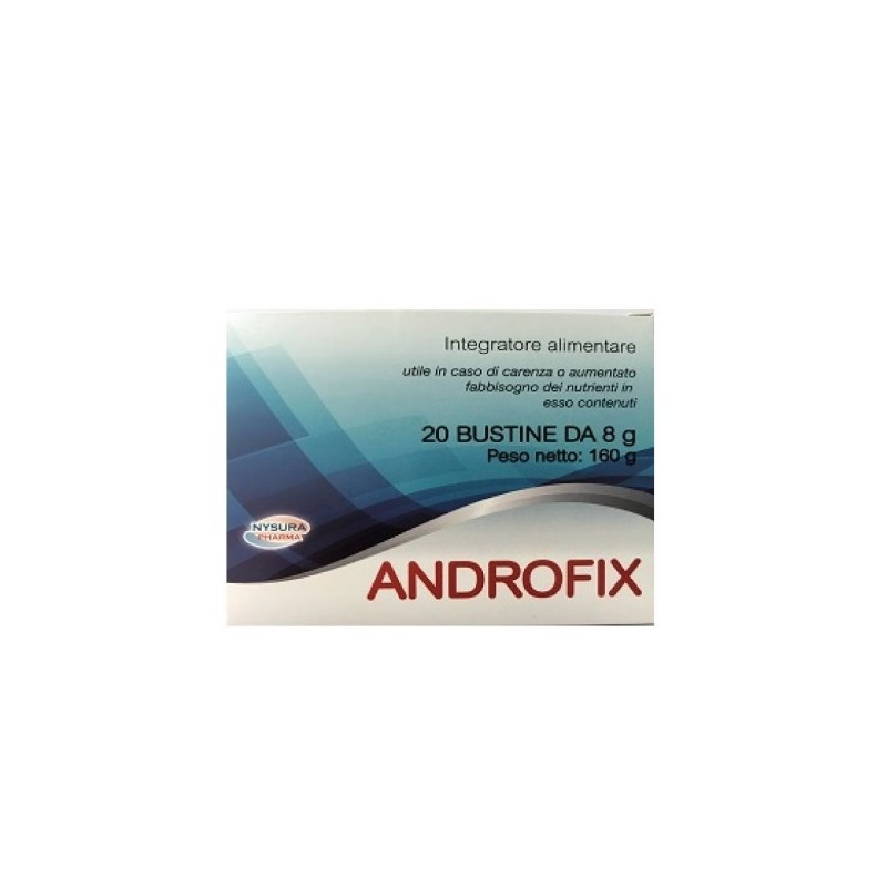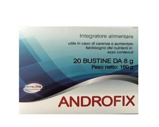 ANDROFIX è un composto prodotto da Nysura Pharma a base di L-Citrullina, L-Acetilglucosammina, Quercitina, L-Arginina Cloridrato, Zinco ed estratto di Spirulina.Tale preparato per i suoi componenti svolge azione trofica quando I’ organismo si trova ad affrontare situazioni di stress psicofisici.