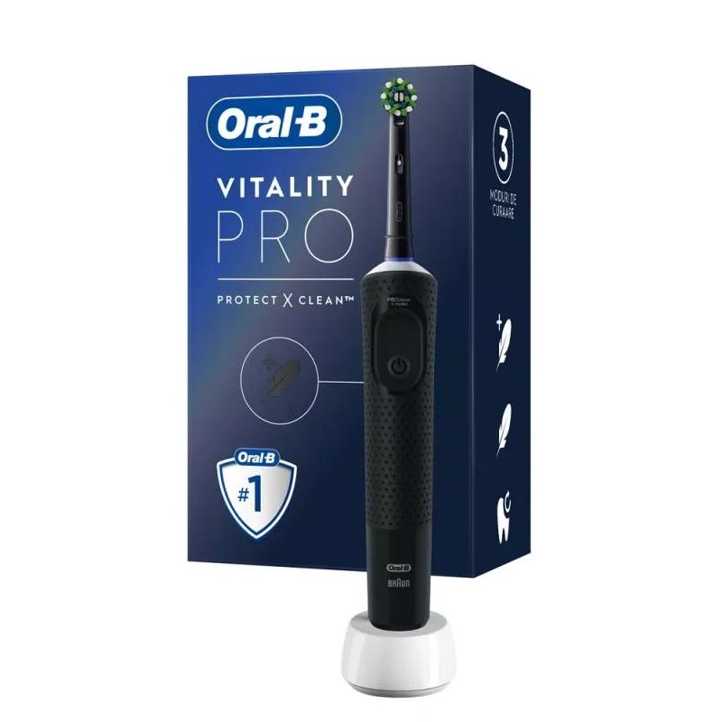 Lo spazzolino elettrico ricaricabile Oral-B Vitality Pro offre una pulizia superiore clinicamente testata rispetto a uno spazzolino manuale tradizionale. Lo spazzolino è dotato di 3 modalità di spazzolamento: