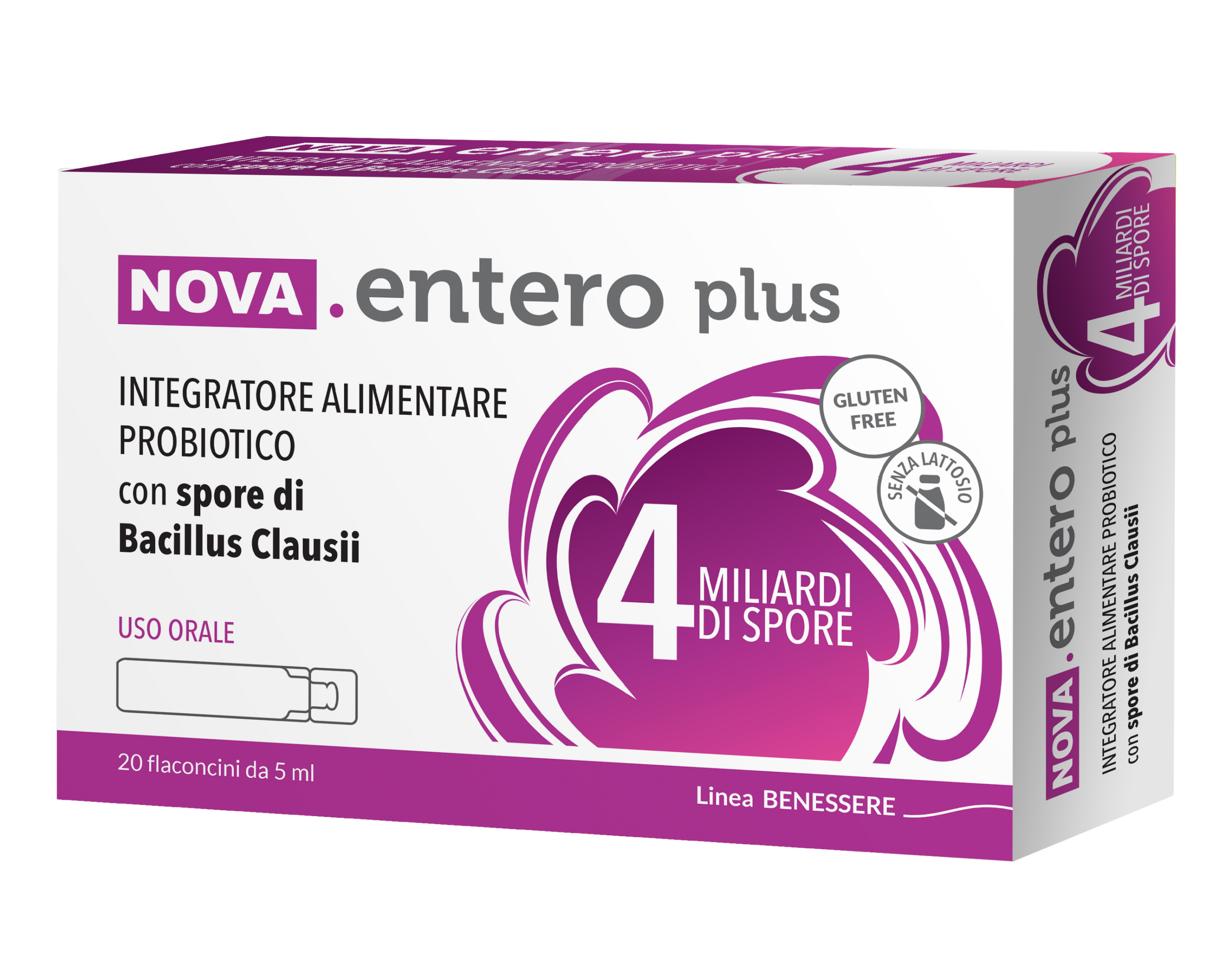 Integratore alimentare probiotico con spore di Bacillus Clausii, utili per favorire l’equilibrio della flora batterica intestinale.