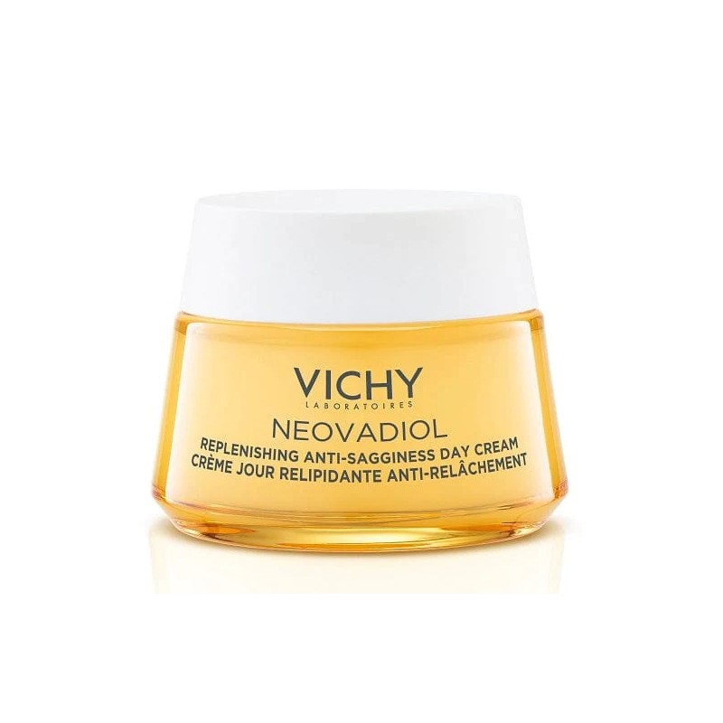Vichy NEOVADIOL Crema giorno anti età Relipidante anti-rilassamento 50 ml corregge gli effetti visibili della menopausa sulla pelle con un'azione mirata su rughe marcate, perdita di densità e di lipidi.