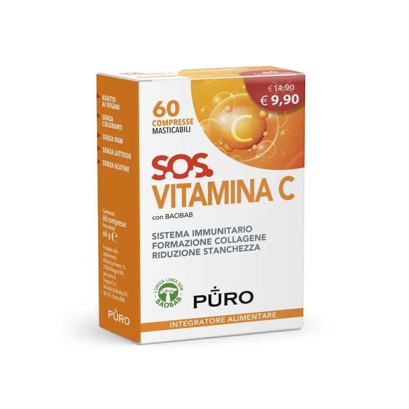 PURO S.O.S. Vitamina C è un integratore alimentare con Baobab, Vitamina C. Rinforza il sistema immunitario, riduce la sensazione di stanchezza e contribuisce alla formazione del collagene. Gli integratori della linea S.O.S. sono gli unici integratori alimentari arricchiti con l'estratto di Baobab. Il Baobab è definito l'Albero della Vita della Madre Terra grazie alle sue molteplici proprietà ed è pertanto considerato uno dei più importanti Superfood naturali.