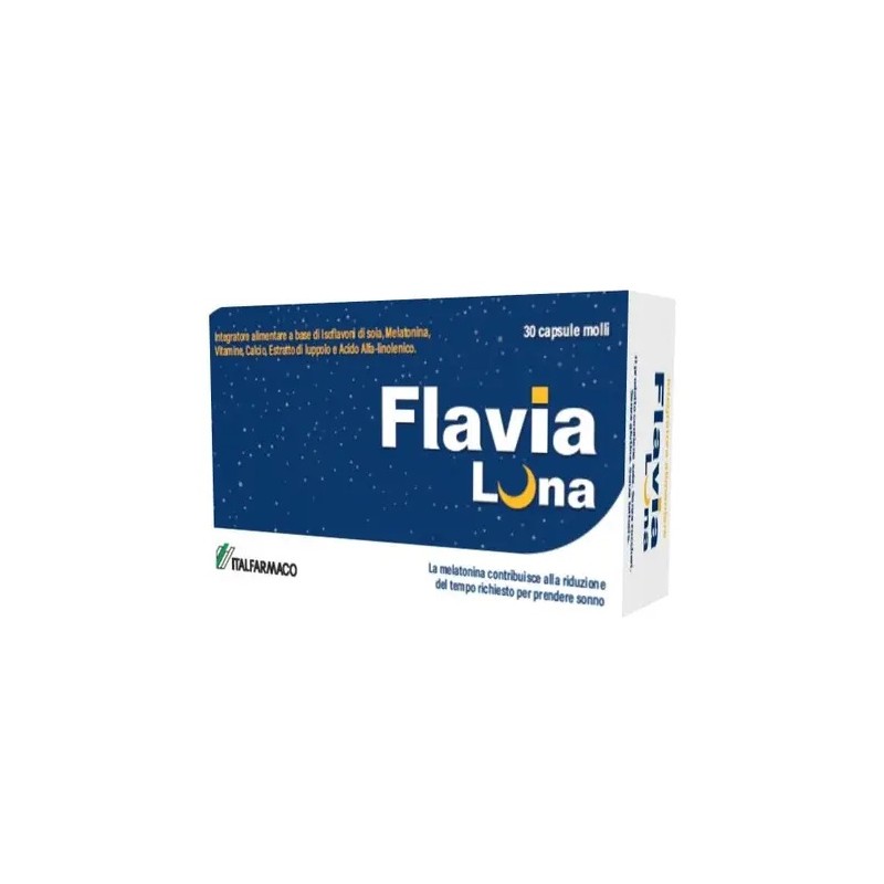 Flavia Luna agisce grazie alla sinergia dei suoi componenti attivi, comeIsoflavoni di Soia - Melatonina - Acido Folico - Vitamina B6 e B12 - Vitamina D3 - Calcio - 8- Prenilnaringenina, che aiutano a ridurre la stanchezza e la fatica, favoriscono il mantenimento della struttura ossea, riducono il tempo di addormentamento e favoriscono il rilassamento in caso di stress.