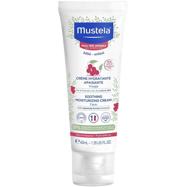 Mustela Crema Viso Lenitiva 40ml è una crema per l'idratazione del viso dei bambini utilizzabile fin dalla nascita, indicata per pelli sensibili.