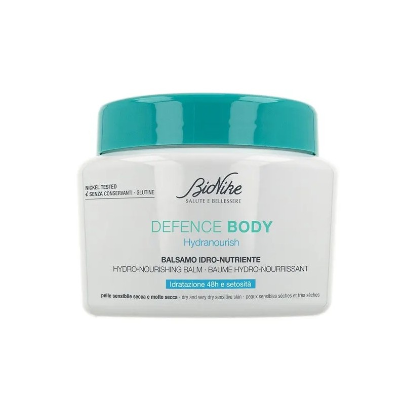 Bionike Defence Body Hydranourish Balsamo Corpo è formulato con Acido Ialuronico a diversi pesi molecolari e burro di Karité, abbina all’intensa e prolungata azione idratante, fino a 48 ore, un effetto nutriente e rinforzante della barriera cutanea. Ideale per la pelle particolarmente secca, dona comfort, morbidezza e setosità.