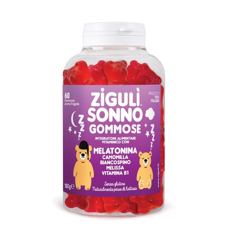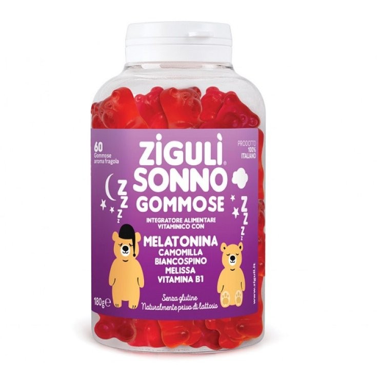 Melatonina, Camomilla e.s. 2% apigenina, Biancospino e.s. 3%, Melissa e.s. 12%, Vitamina B1, sciroppo di glucosio, saccarosio, acqua, gelatina alimentare, acido citrico, Shade Strawberry Red-Clear (prodotto da patata dolce, cartamo e mela) E163, aroma fragola.