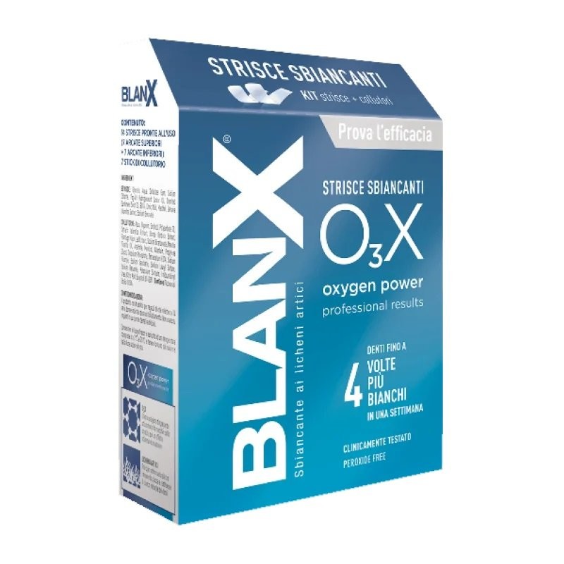 Le strisce sbiancanti O₃X di Blanx sono un prodotto sottile, flessibile, facile da usare e studiato specificamente per il massimo comfort su tutte le arcate dentali.