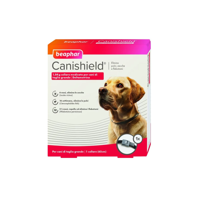 Canishield è il collare alla deltametrina che offre una protezione a lungo termine contro zecche, pulci e flebotomi.