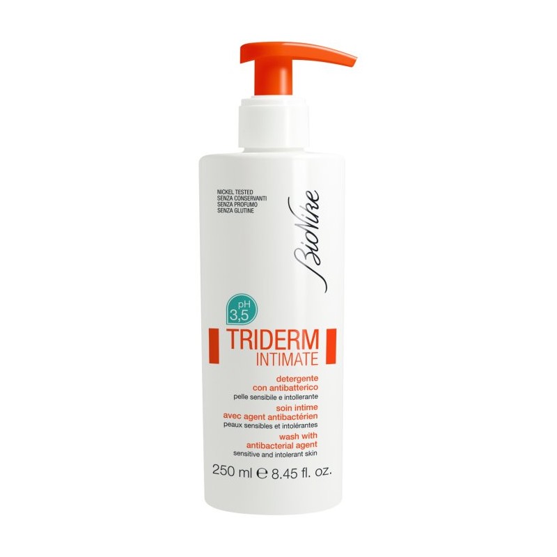 Il detergente intimo Triderm Intimate con antibatterico di Bionike assicura l’igiene quotidiana della donna in tutte le situazioni di ecosistema vaginale alterato, come ciclo mestruale, gravidanza, parto. Con pH 3.5 e a base di tensioattivi non aggressivi, contrasta il cattivo odore, inibendo la proliferazione dei batteri e lenisce le irritazioni, grazie all’azione di α-Bisabololo e Olio essenziale di Rosmarino.
