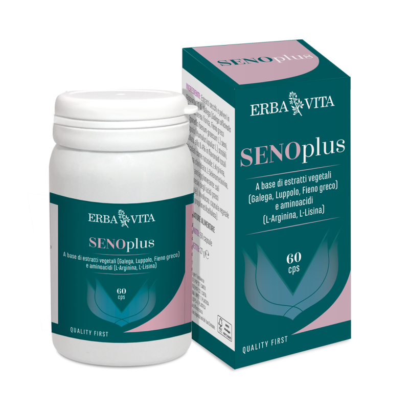 Erba Vita Seno Plus è un integratore a base di estratti vegetali di Galega, Luppolo e Fieno Greco, e amminoacidi (L-Arginina, L-Lisina) utile in caso di gravidanza e allattamento, menopausa