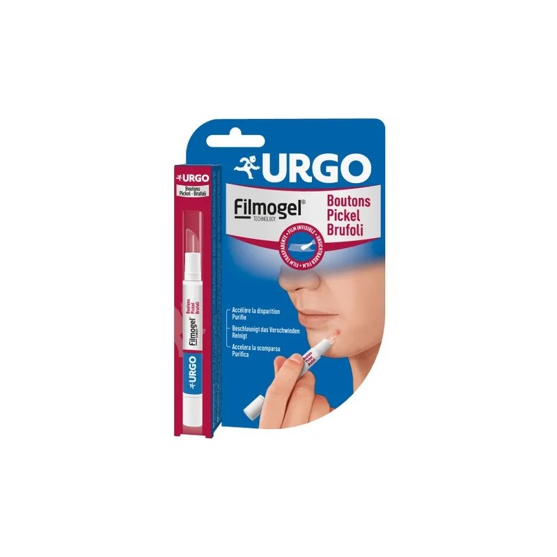 Il prodotto URGO Brufoli Filmogel® è un cosmetico a base di acido salicilico e olio essenziale di Tea Tree, che forma un film confortevole e trasparente che: